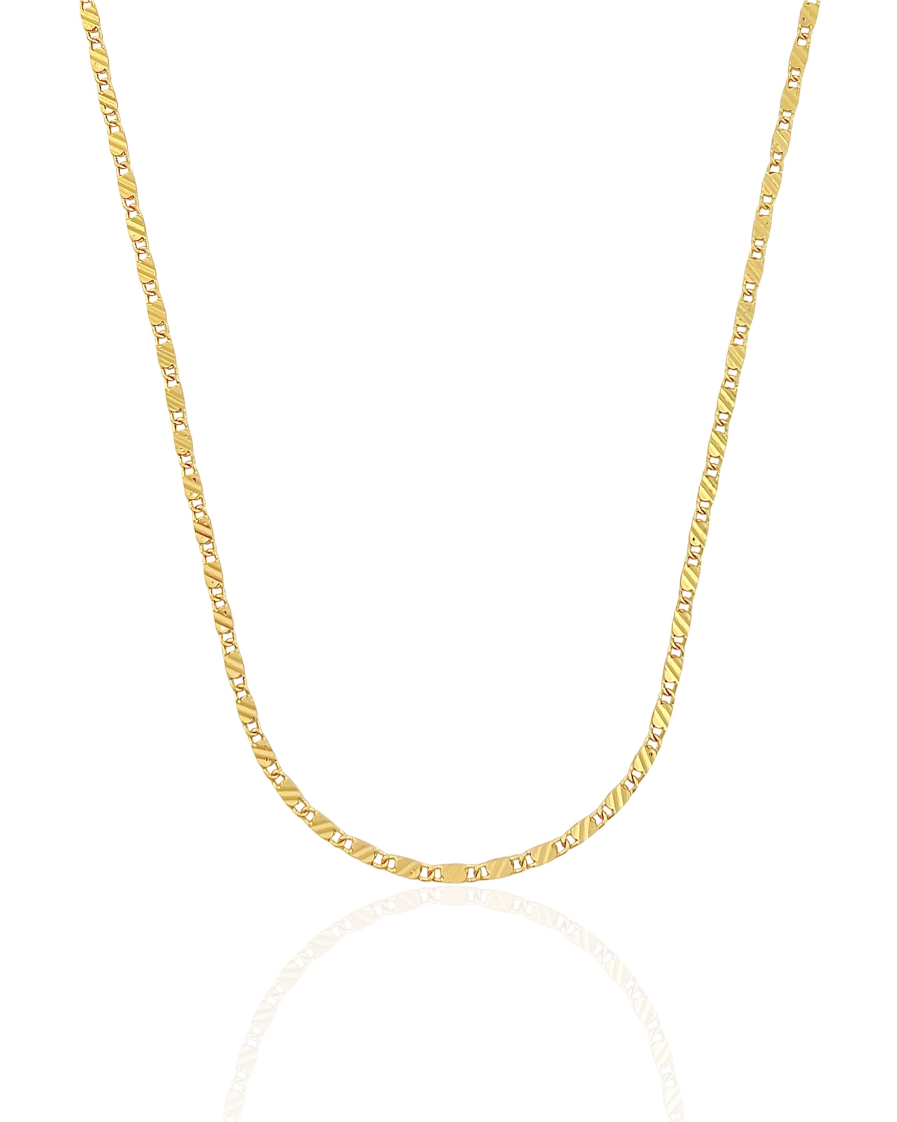 ➡️ Garanta agora a Corrente Infantil Piastrine com Detalhe de Riscos 2 mm x 40 cm banhada a ouro 18k e presenteie com elegância duradoura!